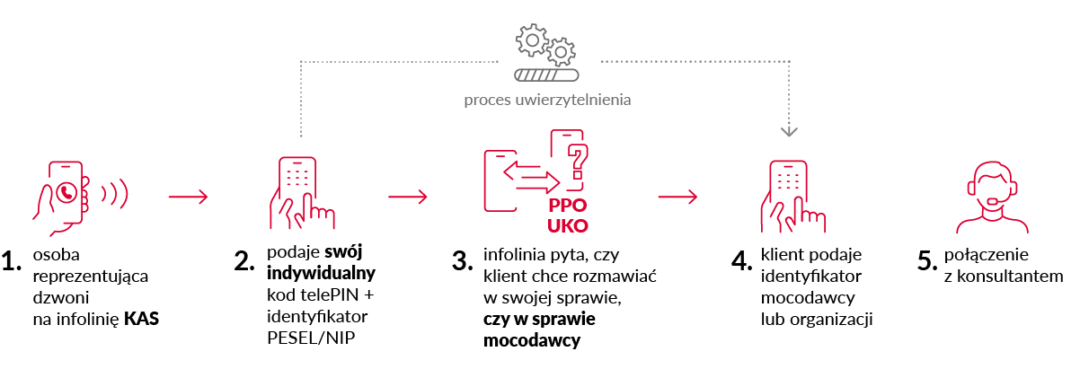 Jeśli dzwoniący chce porozmawiać w sprawie mocodawcy (PPO) lub organizacji (UKO):