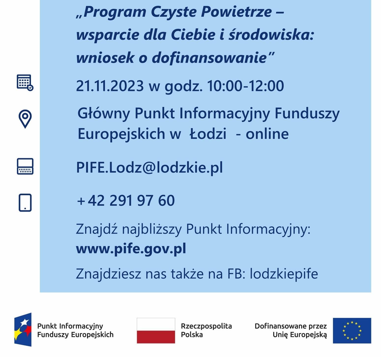 Główny Punkt Informacyjny Funduszy Europejskich w Łodzi zaprasza do udziału w bezpłatnym webinarium pn. „Program Czyste Powietrze – wsparcie dla Ciebie i środowiska: wniosek o dofinansowanie".