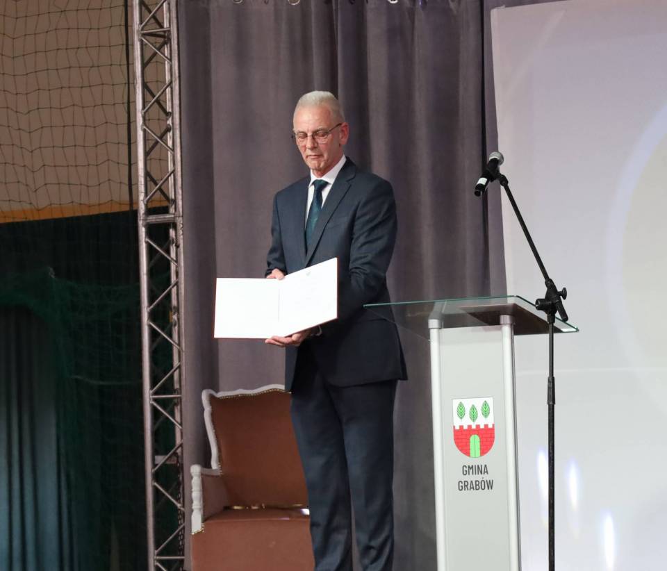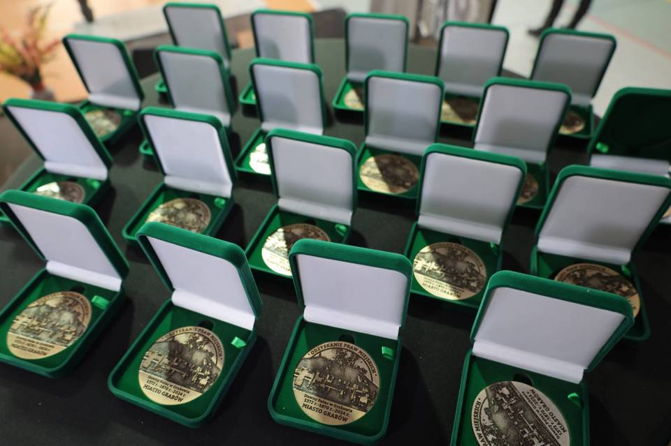 Głos zabrał Burmistrz Grabowa p. Janusz Jagodziński, który w swoim wystąpieniu podsumował starania i długą drogę zmierzającą do tego, by Grabów odzyskał prawa miejskie. W ramach podziękowania za trud włożony w pracę na rzecz Gminy Grabów Włodarz wręczył pamiątkowe medale dot. Odzyskania Praw Miejskich osobom, które w znaczny sposób wpłynęły na rozwój gminy.