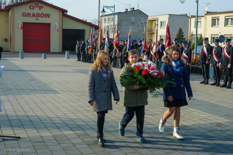 W uroczystościach czynny udział wzięli strażacy Ochotniczych Straży Pożarnych z jednostek Gminy Grabów oraz członkowie Gminnej Orkiestry Dętej.