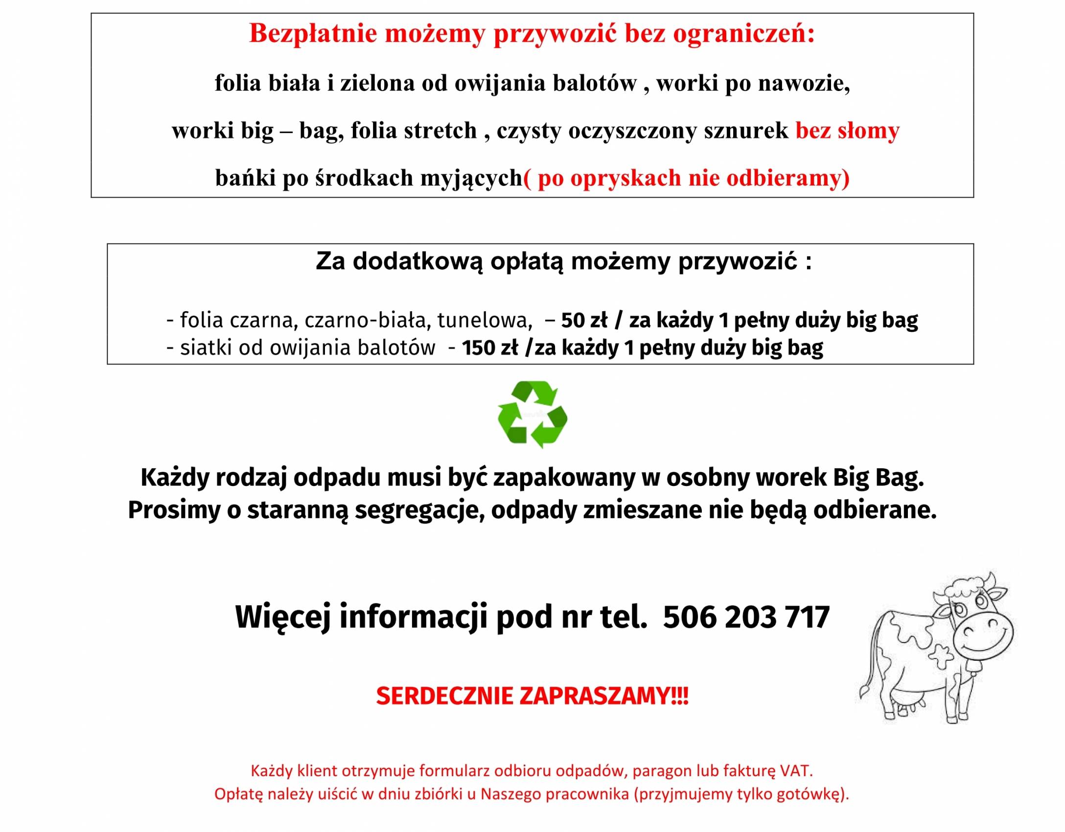 Odbiór w zależności od rodzaju foli jest płatny bądź bezpłatny.