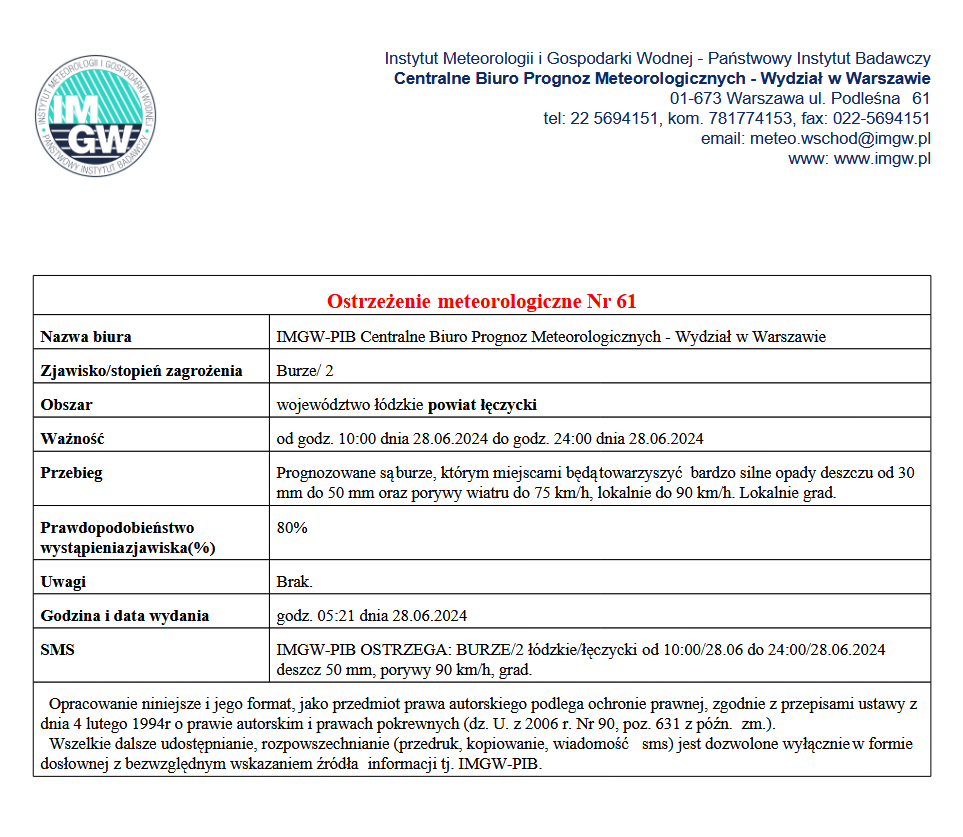 Ostrzeżenie meteorologiczne II stopnia BURZE