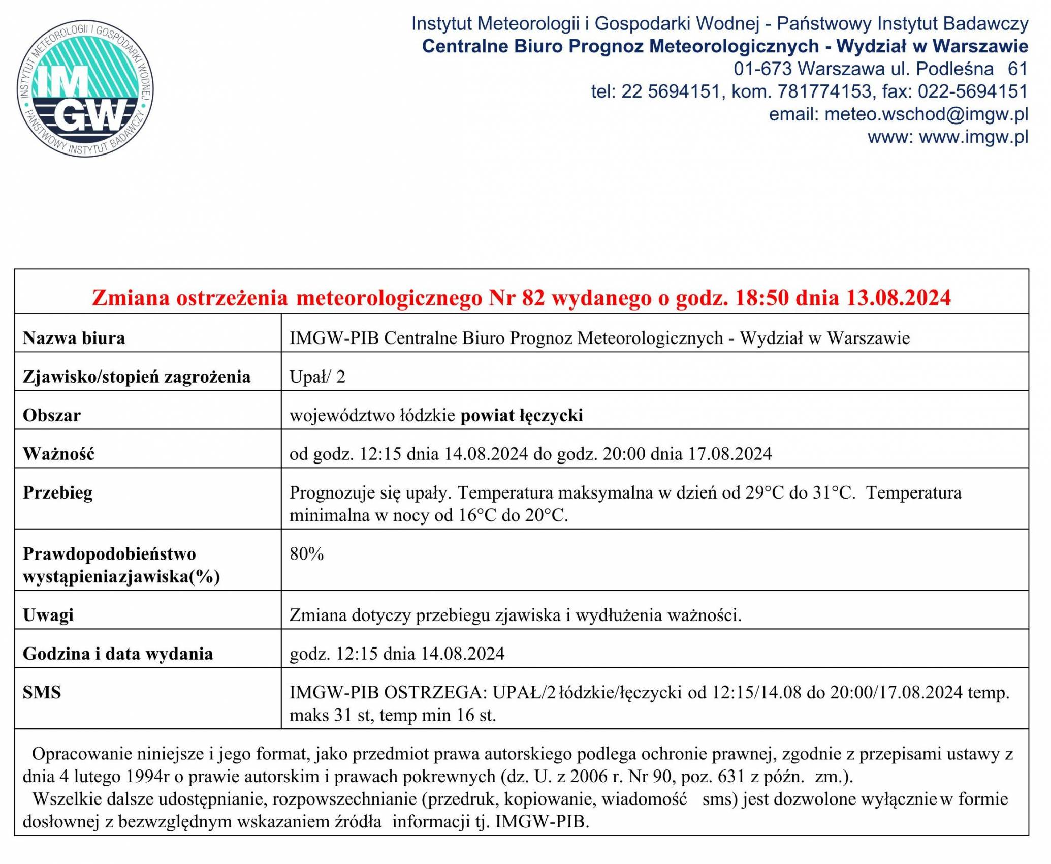Zmiana stopnia ostrzeżenia meteorologicznego - UPAŁ
