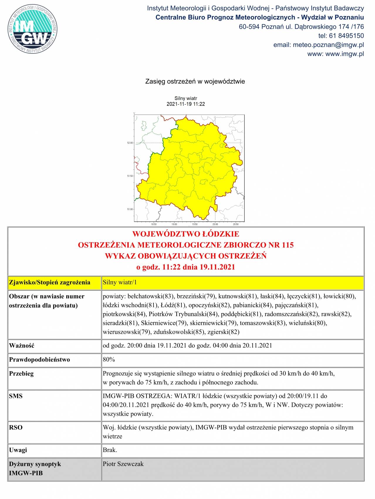 Prognozuje się wystąpienie silnego wiatru o średniej prędkości od 30 km/h do 40 km/h, w porywach do 75 km/h, z zachodu i północnego zachodu.