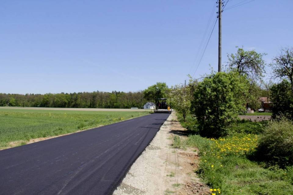 Całkowita długość odcinka drogi to 898 mb, podbudowa ma 20 cm, warstwa asfaltu 5 cm, szerokość pasa jezdni to 4 m.
