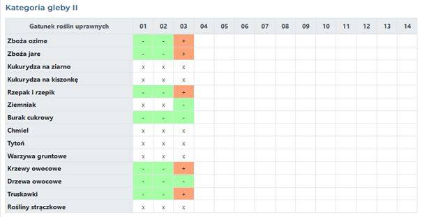 gleby kategorii II w uprawie zbóż jarych, ozimych, rzepaku i rzepiku, krzewów owocowych i truskawek;