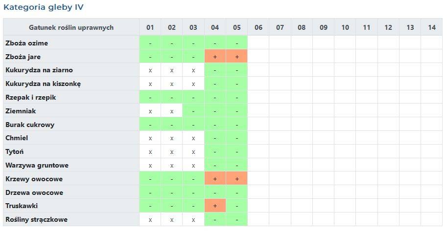 gleby kategorii IV w uprawach zbóż jarych, krzewów owocowych.