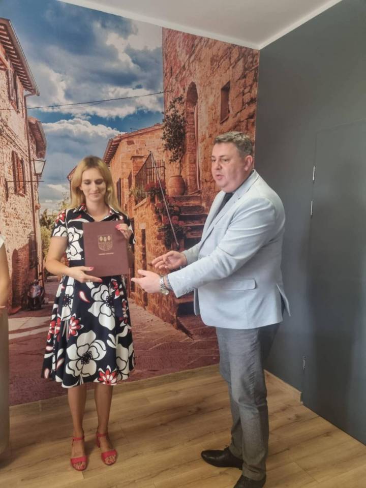 Wręczenia aktu dokonał Pan Mariusz Jagielski - Burmistrz Grabowa w obecności Pani Anny Witczak – Dyrektora Szkoły Podstawowej im. Jana Kochanowskiego w Grabowie.