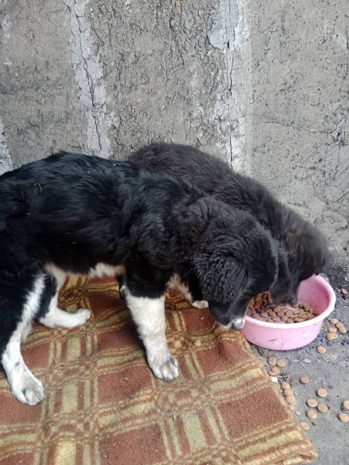 Dwa pozostałe pieski to młodziutkie szczeniaki podobne do Berneńskich Psów Pasterskich.