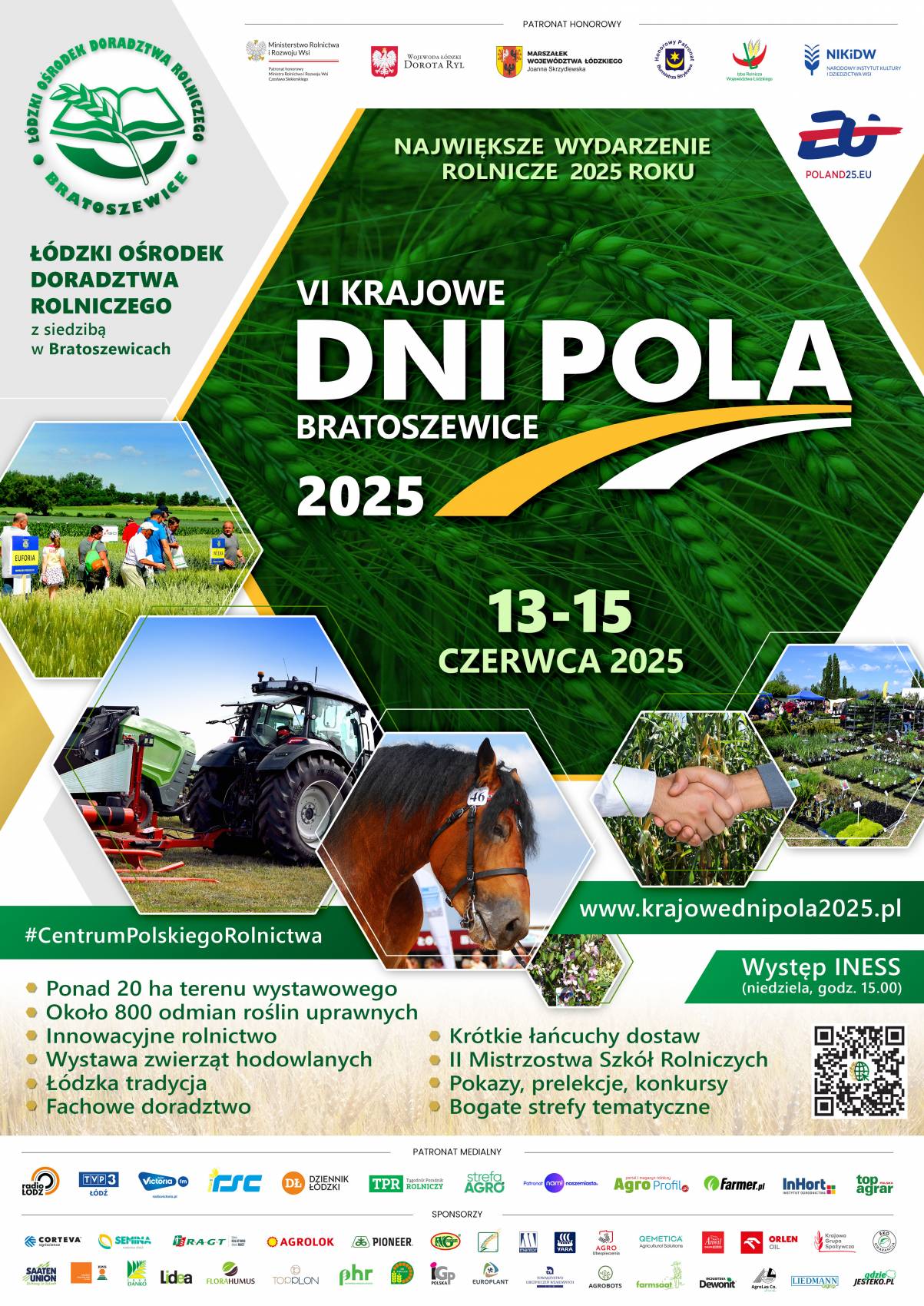 Łódzki Ośrodek Doradztwa Rolniczego z siedzibą w Bratoszewicach ma zaszczyt zaprosić Państwa do udziału w VI Krajowych Dniach Pola 2025, które odbędą się w dniach 13-15 czerwca 2025 na terenach wystawowych i poletkach demonstracyjnych ŁODR.