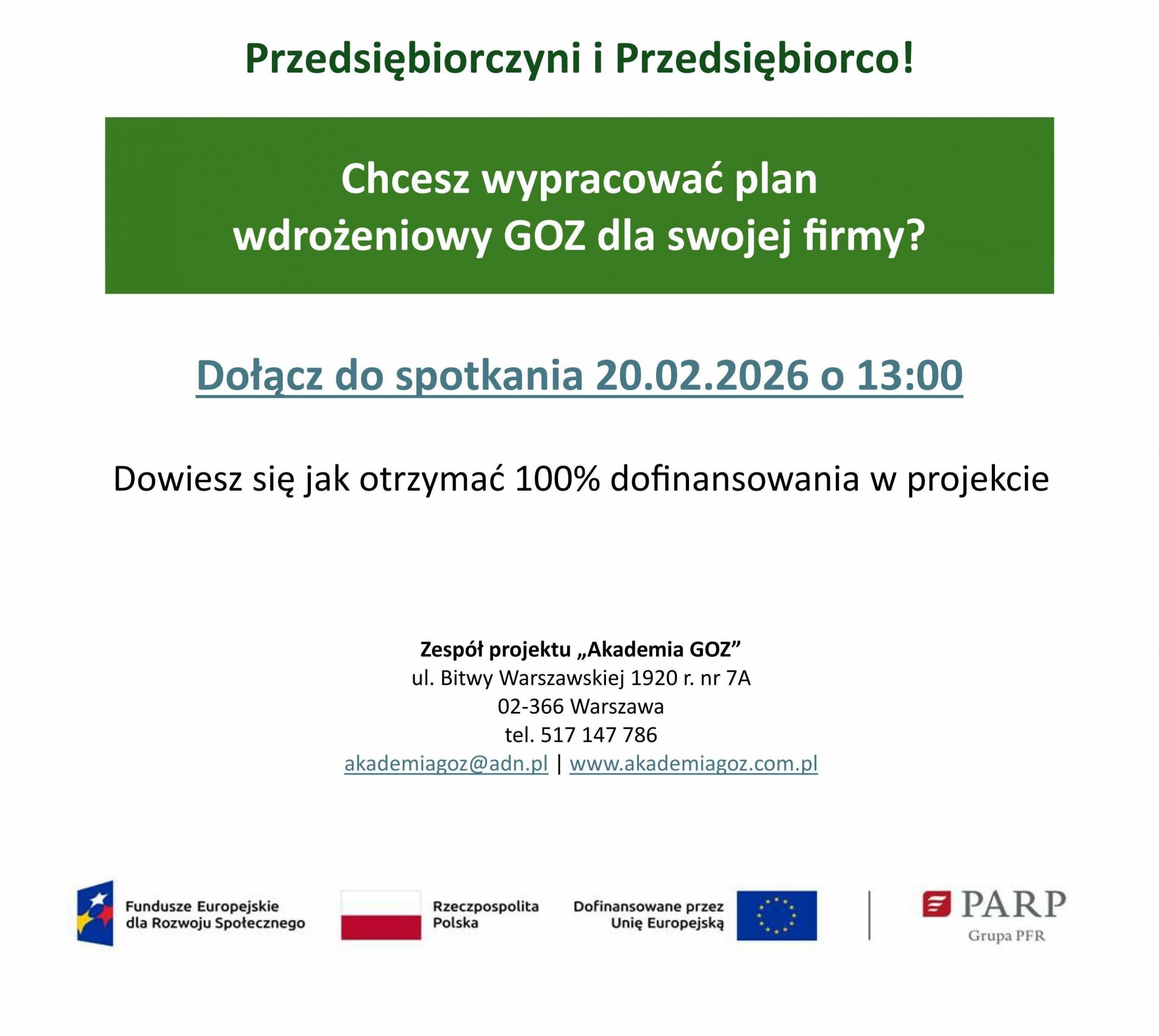 Krajowa Izba Gospodarcza oraz Instytut ADN sp. z o. o. sp. k., zapraszają do udziały w projekcie „Akademia GOZ"