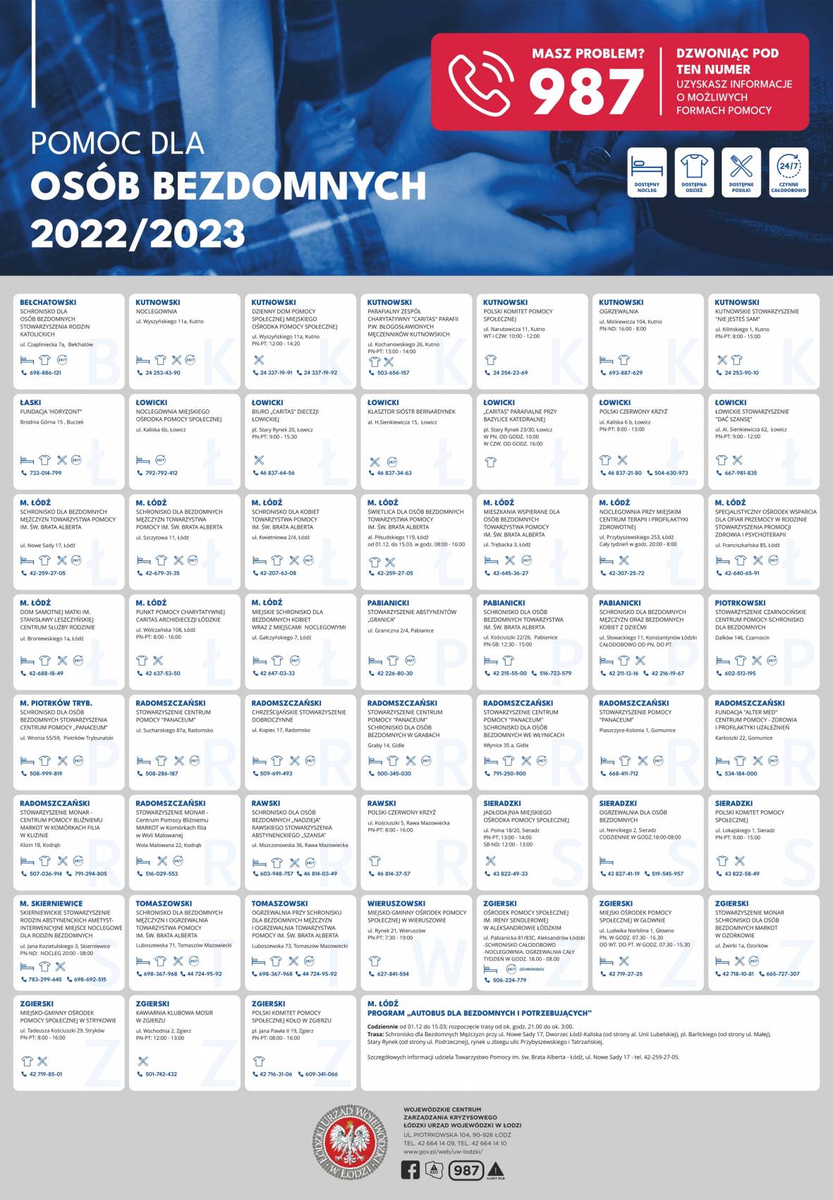 Informacja dot. placówek świadczących pomoc dla osób bezdomnych na terenie województwa łódzkiego, w sezonie zimowym 2022-2023