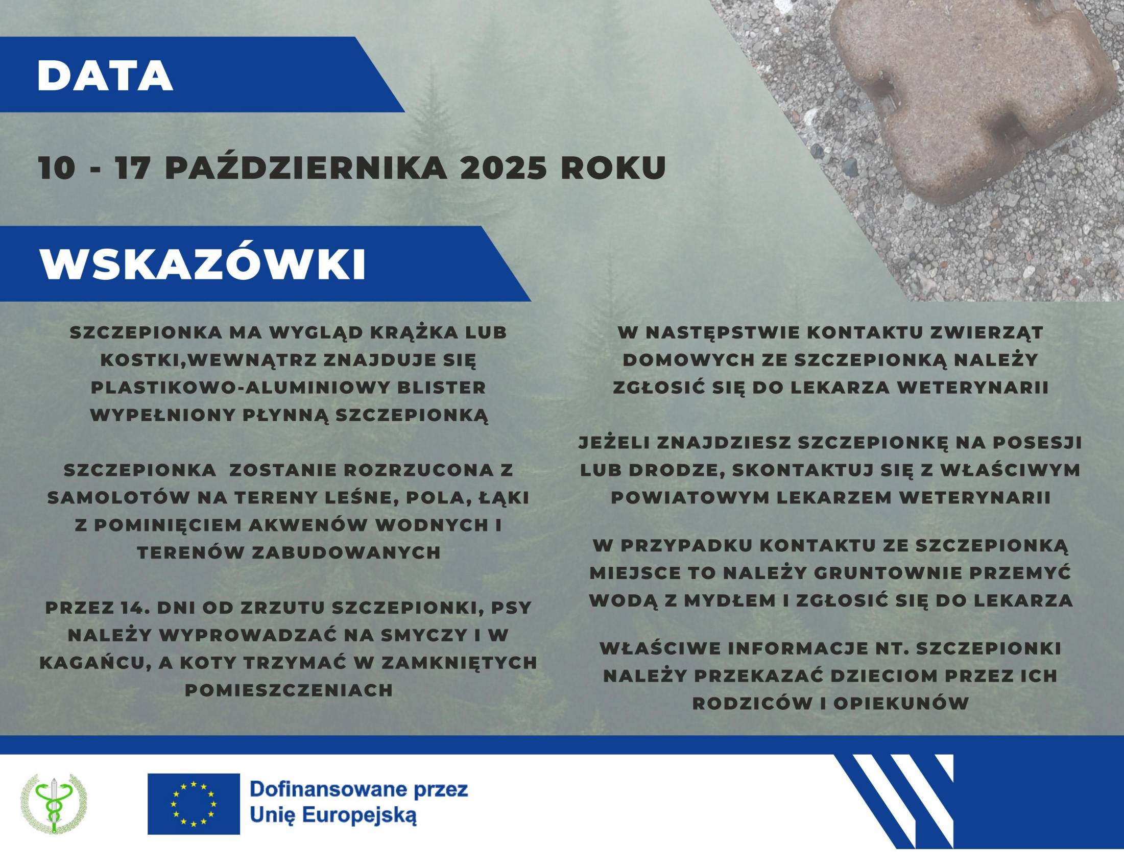 W okresie pomiędzy 10 a 17 października 2025 r. zostanie przeprowadzona jesienna akcja szczepienia lisów wolno żyjących przeciwko wściekliźnie.