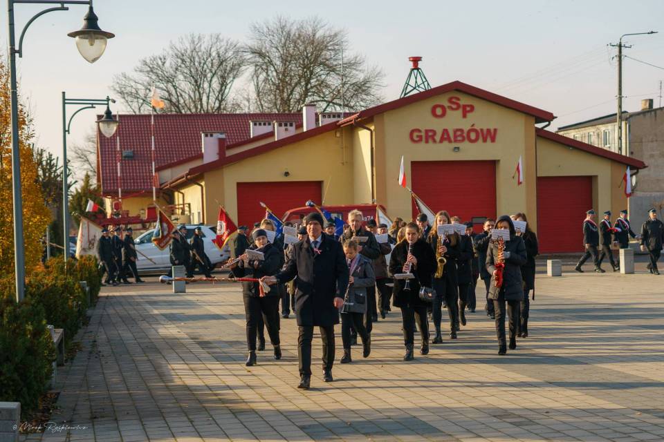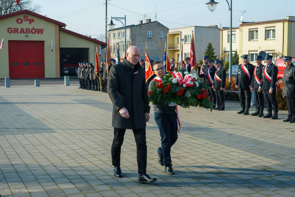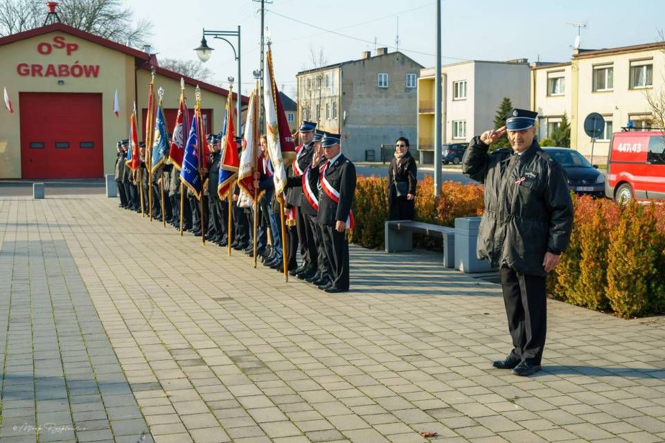 W uroczystościach czynny udział wzięli strażacy Ochotniczych Straży Pożarnych z jednostek Gminy Grabów oraz członkowie Gminnej Orkiestry Dętej.