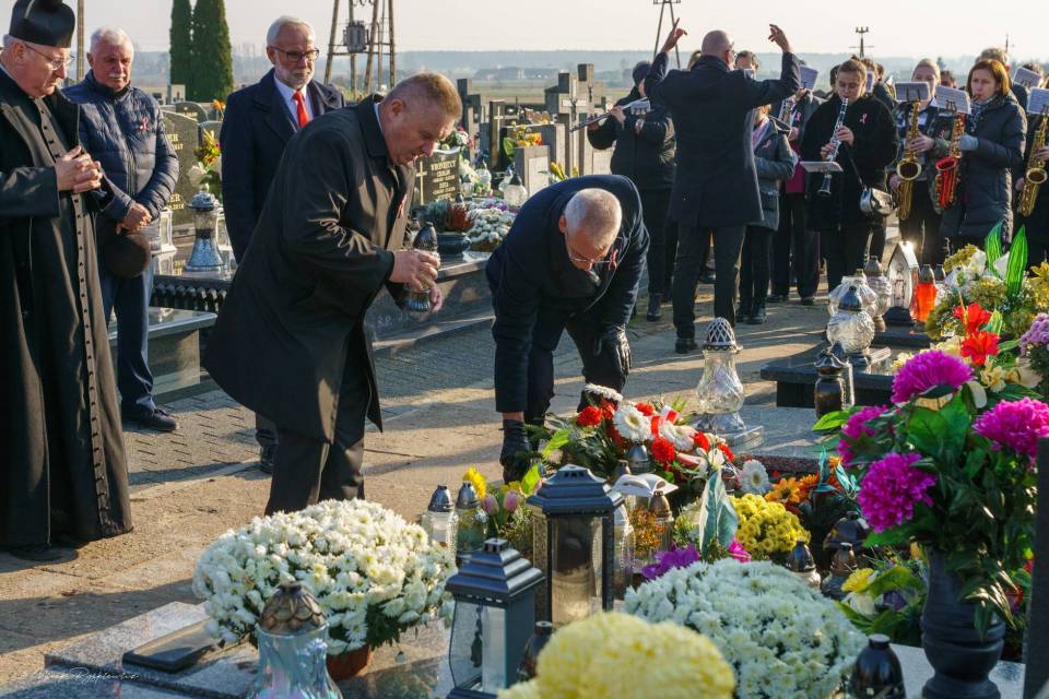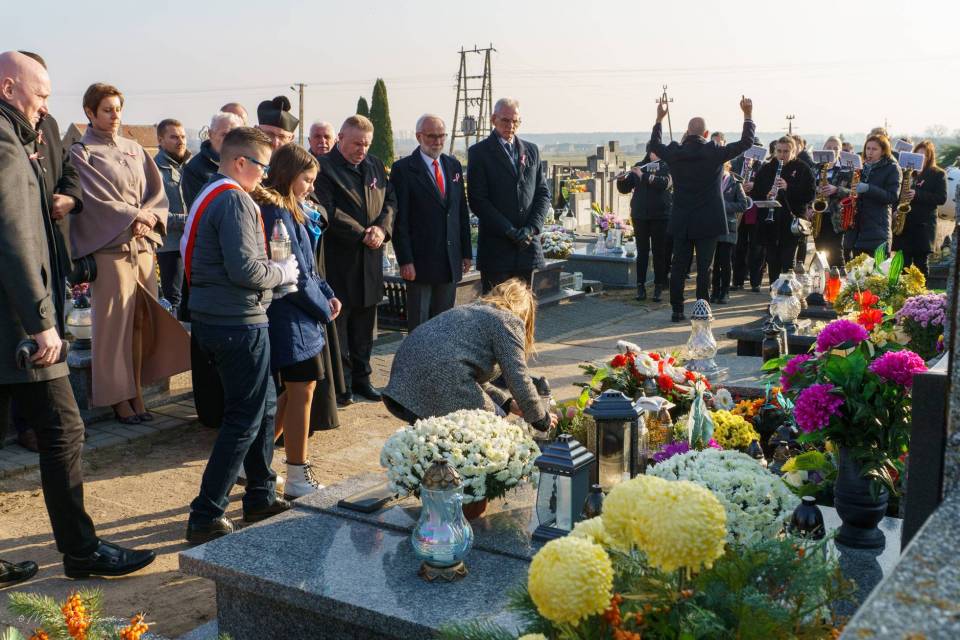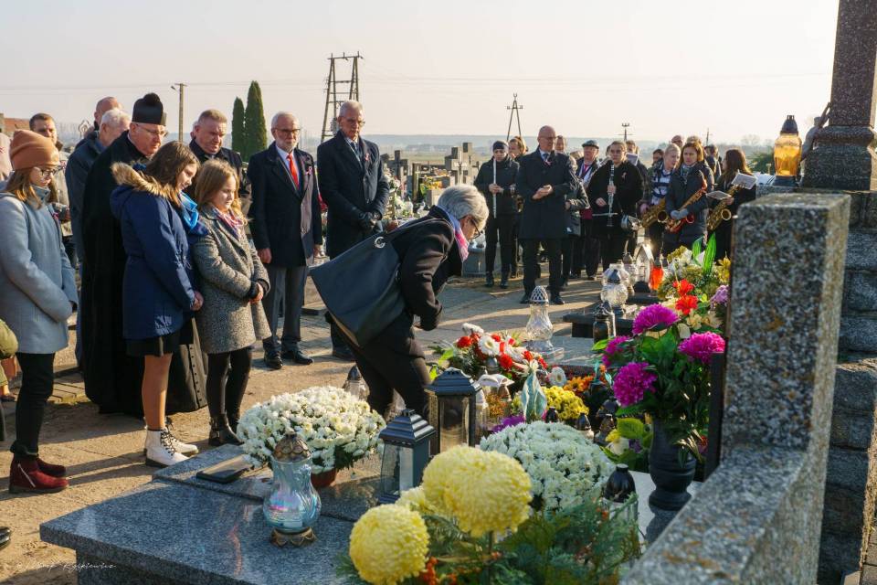 Po Mszy Świętej nadszedł czas odwiedzenia Grobu Nieznanego Żołnierza- na cmentarzu parafialnym w Grabowie. Zostały tam złożone kwiaty od władz Gminy oraz przedstawicieli szkół.