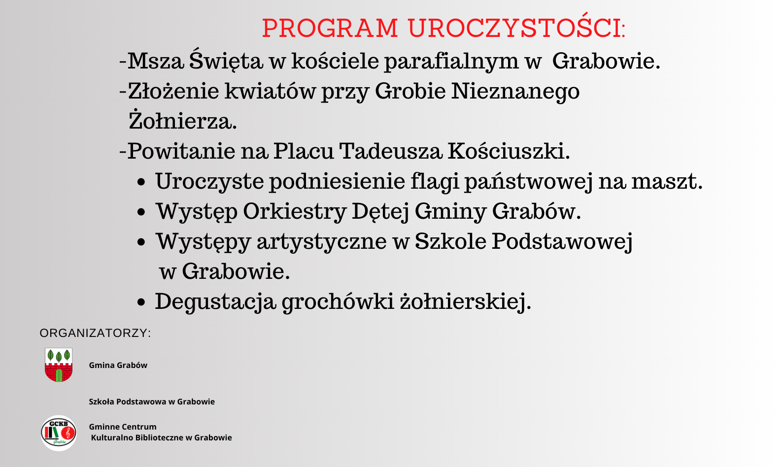 Zapraszamy Państwa na Obchody Narodowego Święta Niepodległości -11 listopada godz. 12:00