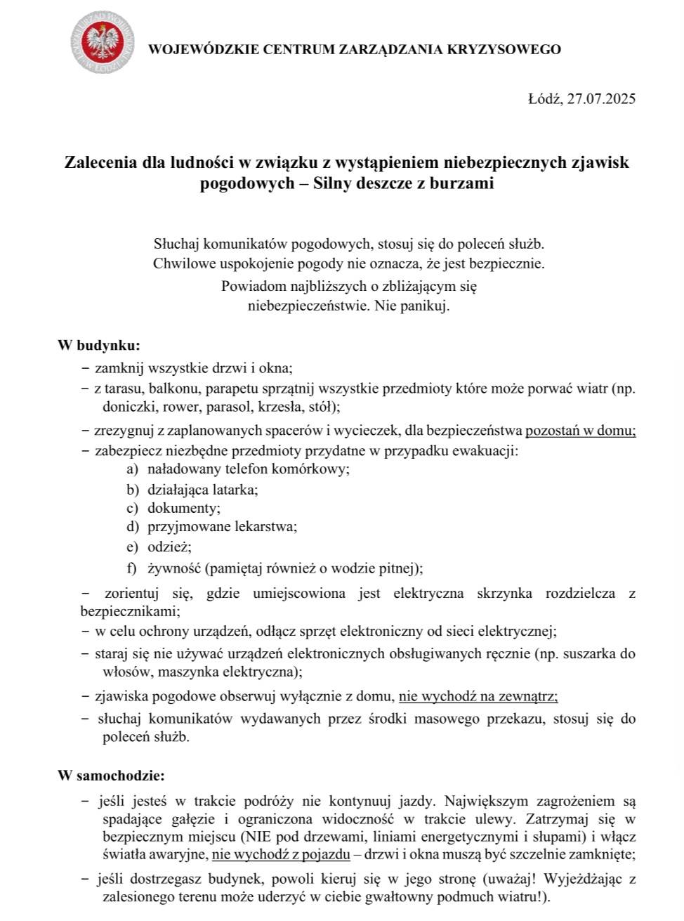 Ostrzeżenie meteorologiczne III stopnia SILNY DESZCZ Z BURZAMI