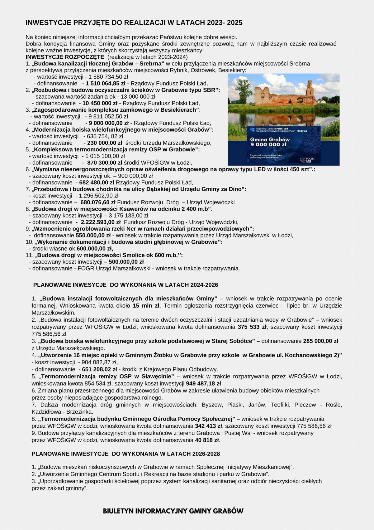 Podsumowanie Kadencji Burmistrza i Rady Miejskiej w Grabowie w latach 2018-2024.