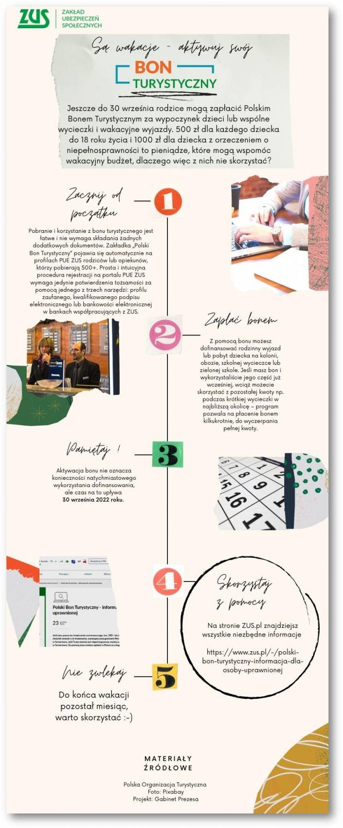 Uruchomiona została specjalna infolinia, która wspiera zarówno turystów, jak i przedstawicieli branży turystycznej. Prowadzi ją Zakład Ubezpieczeń Społecznych. Infolinia Polskiego Bonu Turystycznego: 22 11 22 111 oraz e-mail: Ten adres pocztowy jest chroniony przed spamowaniem. Aby go zobaczyć, konieczne jest włączenie w przeglądarce obsługi JavaScript.