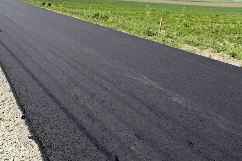 Całkowita długość odcinka drogi to 898 mb, podbudowa ma 20 cm, warstwa asfaltu 5 cm, szerokość pasa jezdni to 4 m.