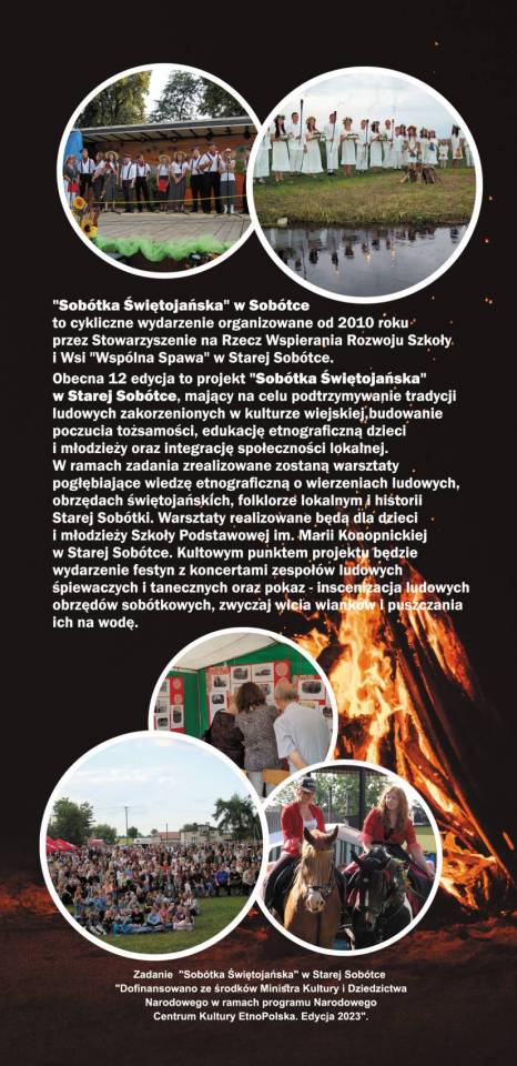 Zapraszamy na Sobótkę Świętojańską w Starej Sobótce która odbędzie się 25 czerwca 2023 roku na boisku szkolnym o godzinie 14:00