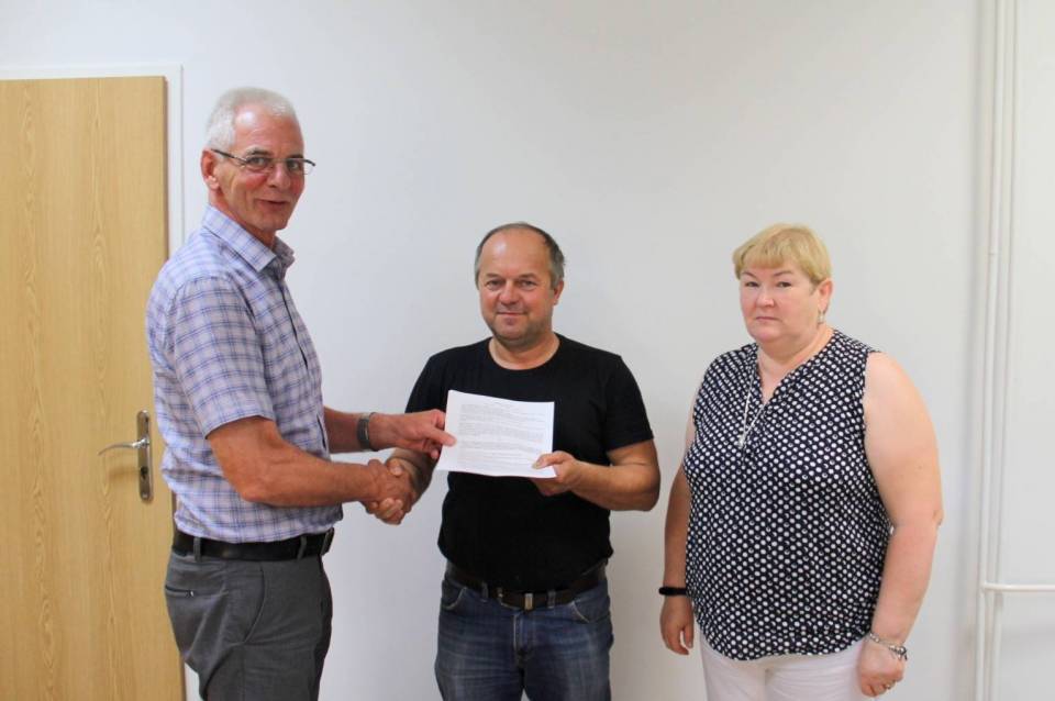 Na zdj. Sołtysi sołectw, które otrzymały dofinansowanie w ramach projektu "Sołectwo na Plus" Województwa Łódzkiego oraz Wójt Gminy Grabów p. Janusz Jagodziński wraz ze Skarbnikiem p. Grażyną Życzkowską.