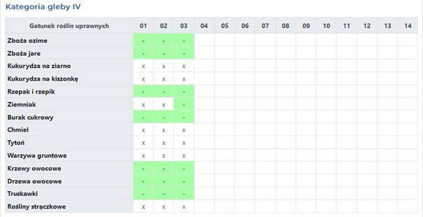 gleby kategorii I w uprawie zbóż jarych, ozimych, rzepaku i rzepiku, krzewów owocowych, drzew owocowych i truskawek;