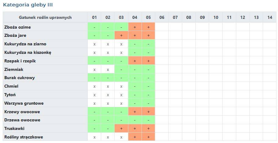 gleby kategorii III w uprawie zbóż jarych, ozimych, rzepaku i rzepiku, krzewów owocowych, truskawek i roślin strączkowych;
