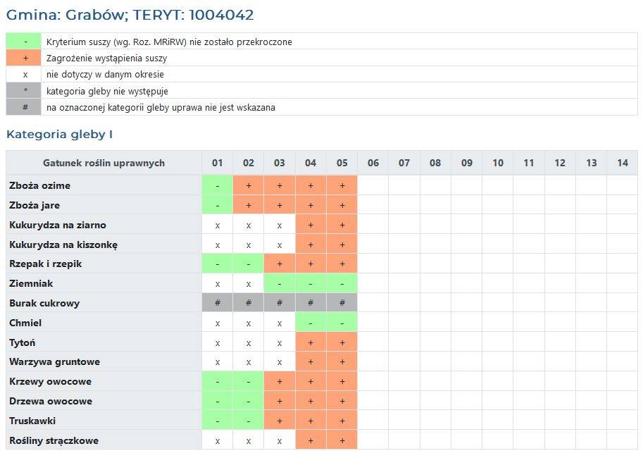 Bieżący stan zagrożenia suszą dla Gminy Grabów podawany jest na stronie internetowej: susza.iung.pulawy.pl.