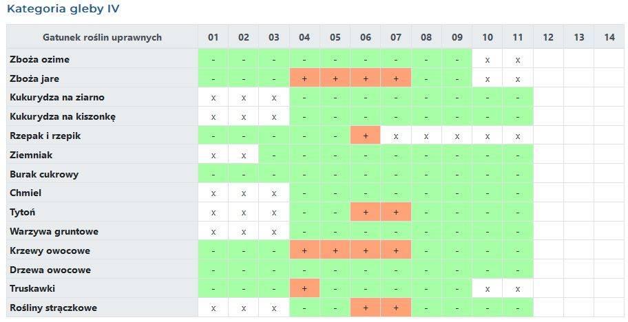 gleby kategorii IV w uprawie zbóż jarych, ozimych, kukurydzy na ziarno, kukurydzy na kiszonkę, rzepaku i rzepiku, tytoniu, warzyw gruntowych,krzewów owocowych, truskawek i roślin strączkowych;
