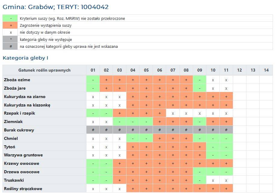 Bieżący stan zagrożenia suszą dla Gminy Grabów podawany jest na stronie internetowej: susza.iung.pulawy.pl.