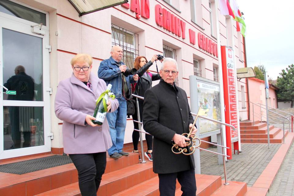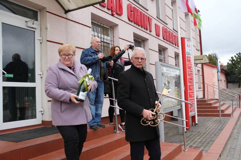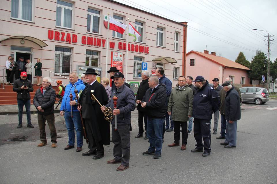 Następnie, w rytm muzyki granej przez Gminną Orkiestrę Dętą, korowód pomknął w stronę Urzędu Gminy Grabów. Tam, w sposób uroczysty Wójt Gminy Grabów p. Janusz Jagodziński przekazał klucz do bram Gminy Grabów Królowi Palanta. Wszyscy zebrani przemierzali dumnie ulice Grabowa, muzyka rozlegała się bardzo głośno, nie sposób było nie usłyszeć jej zapewne w okolicznych domostwach.