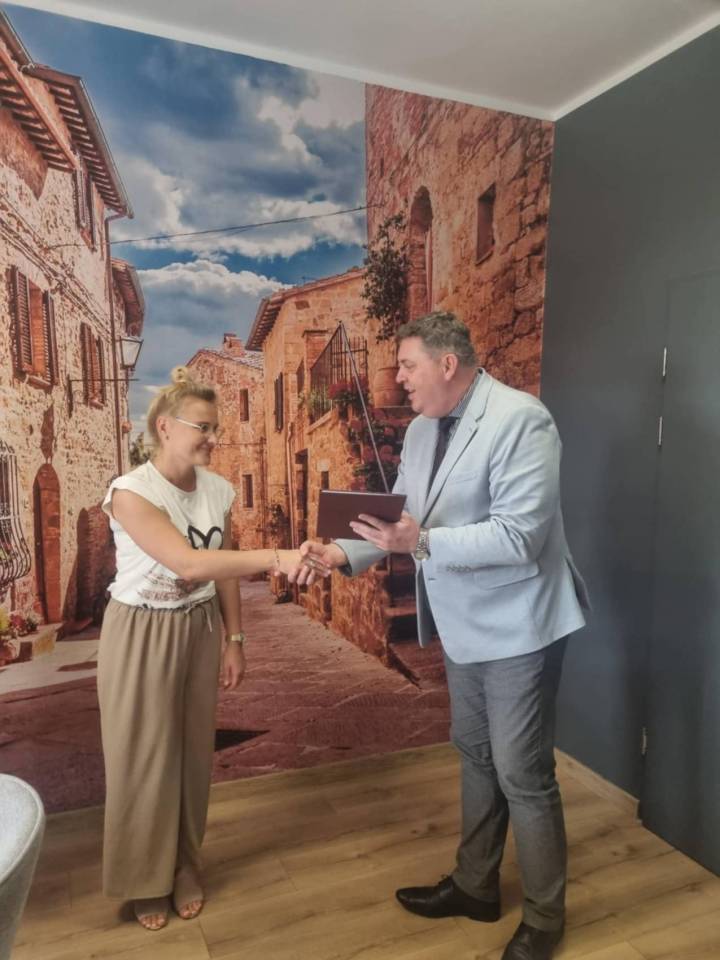 Wręczenia aktu dokonał Pan Mariusz Jagielski - Burmistrz Grabowa w obecności Pani Anny Witczak – Dyrektora Szkoły Podstawowej im. Jana Kochanowskiego w Grabowie.