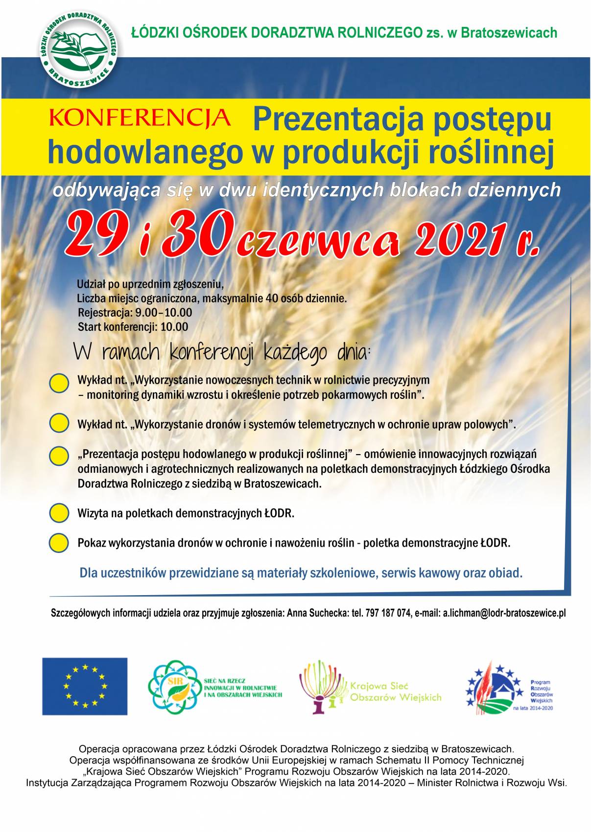 Zapraszamy Państwa do udziału w Wojewódzkich Dniach Pola, organizowanych przez Łódzki Ośrodek Doradztwa Rolniczego z siedzibą w Bratoszewicach w dniach 29-30.06.2021 r. Jest to impreza skierowana przede wszystkim do rolników zajmujących się produkcją polową. Na Poletkach Demonstracyjnych prezentowanych będzie wiele kolekcji roślin uprawnych takich jak: