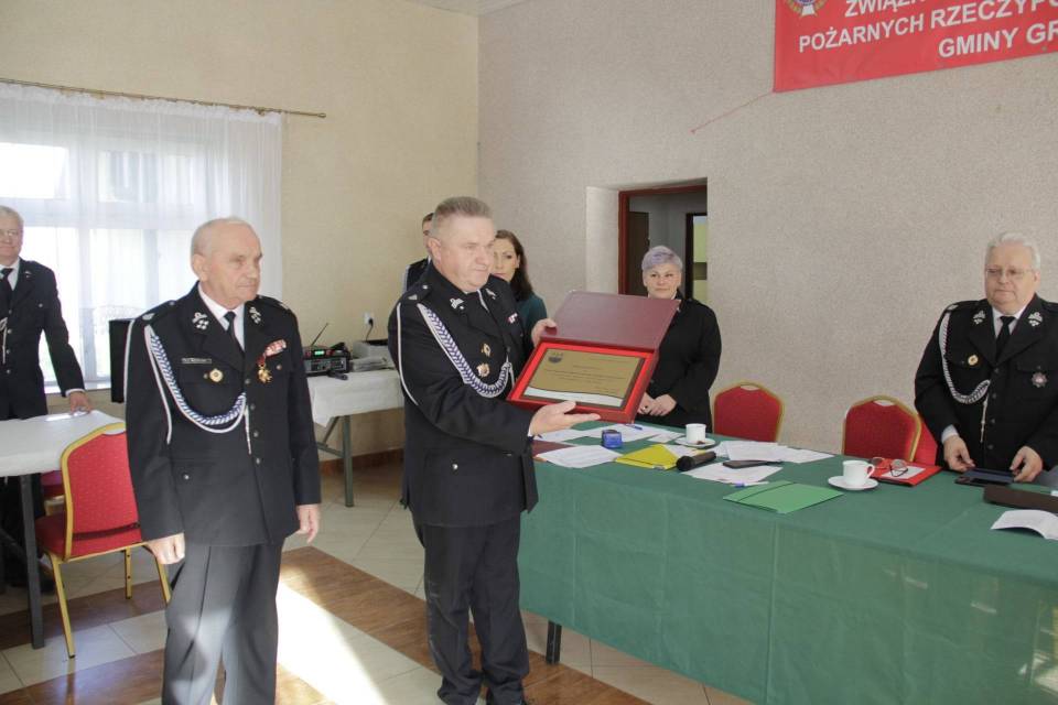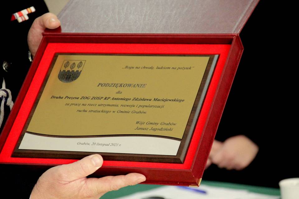 Przewodniczący RG Grabów p. Józef Drozdowski złożył na ręce druha Antoniego Zdzisława Maciejewskiego w imieniu Wójta Gminy Grabów Podziękowanie w formie pamiątkowej tabliczki.