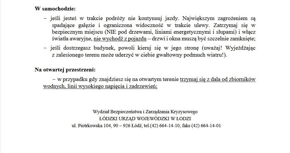 Zalecenia dla ludności w związku z intensywnymi opadami deszczu